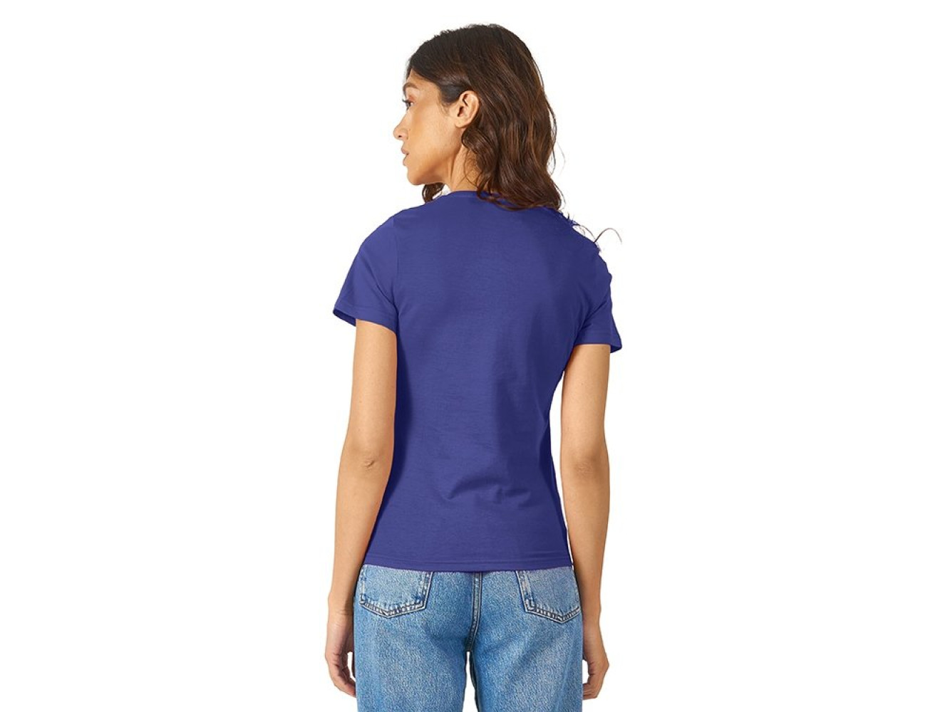 Женская футболка из натурального хлопка с элегантным V-образным вырезом. Материал отлично подходит для нанесения рекламной информации. Натуральная ткань не вызывает раздражения кожи.