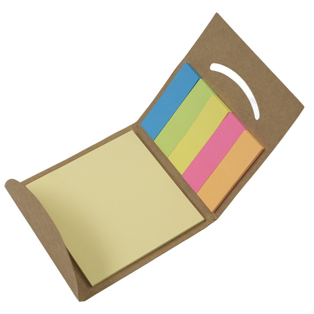 Набор стикеров в крафтовой обложке. Размер 85х84х6 мм. 6 цветов. 20 стикеров каждого цвета с клеевым краем.