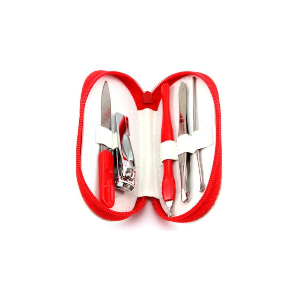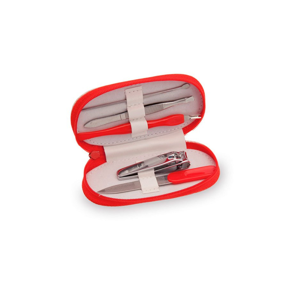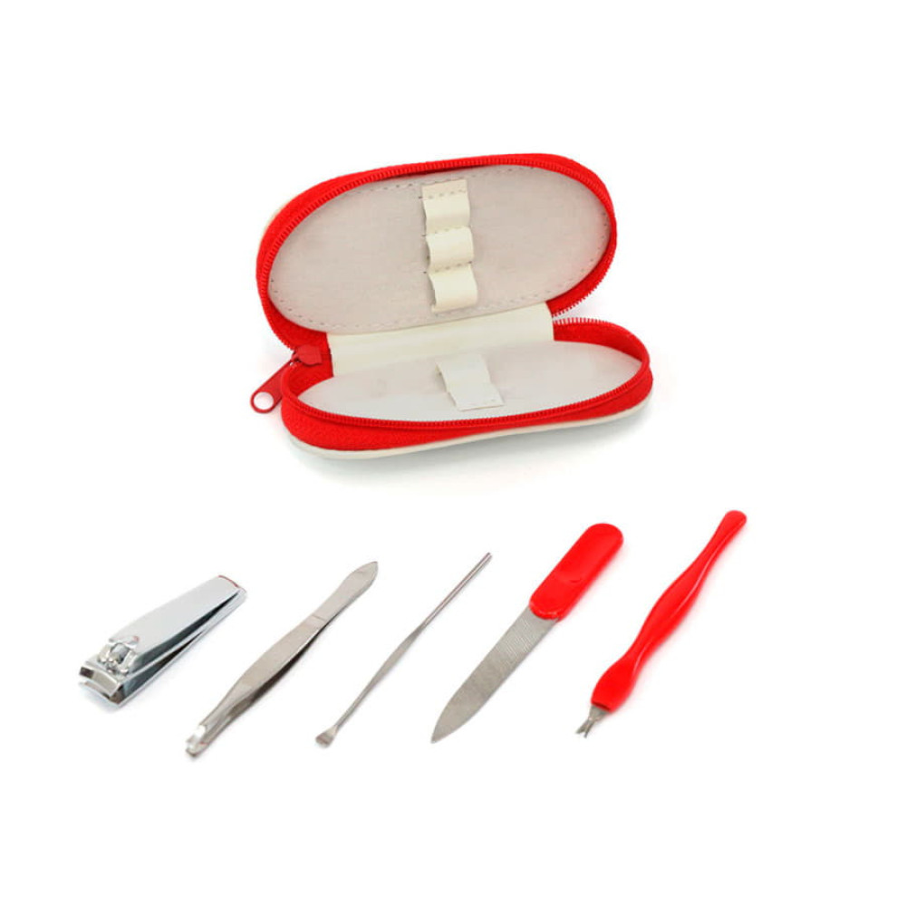 Маникюрный набор из 5 аксессуаров из нержавеющей стали в футляре из искусственной кожи с застежкой-молнией. В набор входят: пилка, пинцет,щипчики, пушер, триммер.