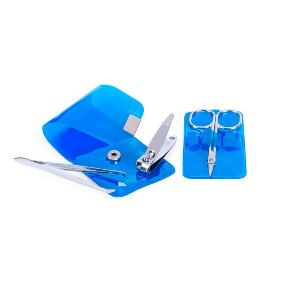Маникюрный набор из 3-х аксессуаров из нержавеющей стали в прозрачном прочном ПВХ-футляре. В сотавт набора входят: ножницы, пинцет, щипчики.