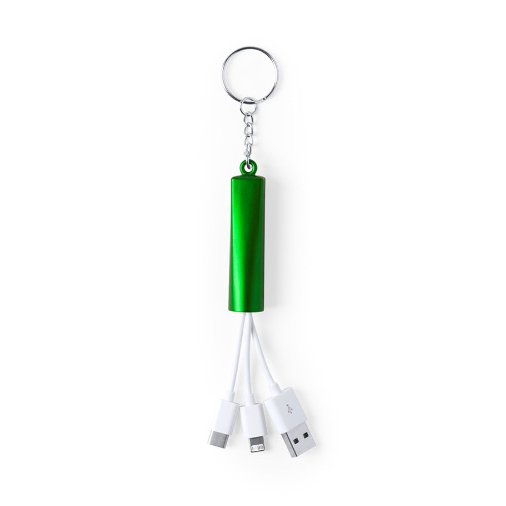 Универсальный кабель-брелок с подсветкой логотипа во время зарядки. Все необходимые разъемы в одном устройстве (type C, Micro USB и Lightning) Представлен в нескольких вариантов цветов металлик