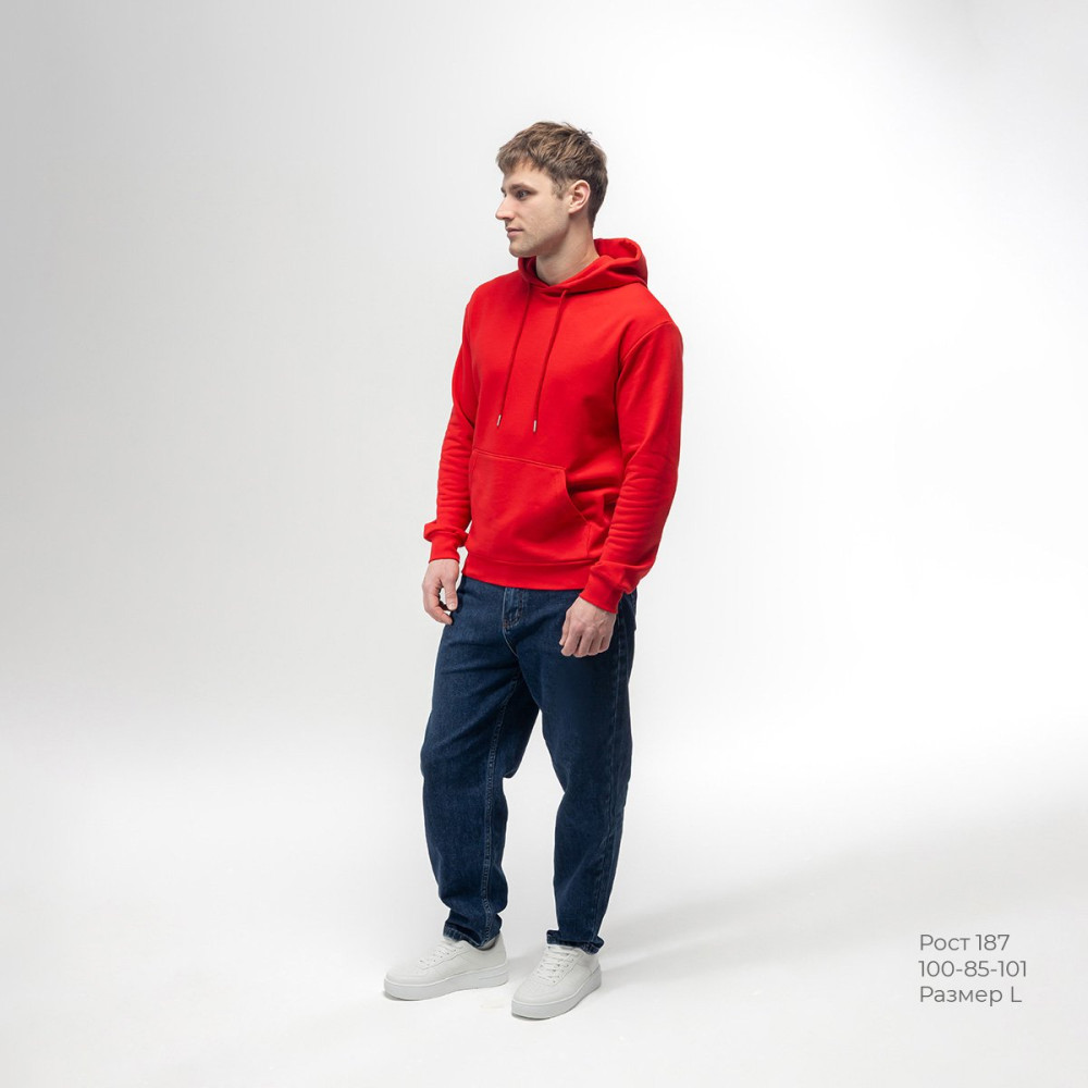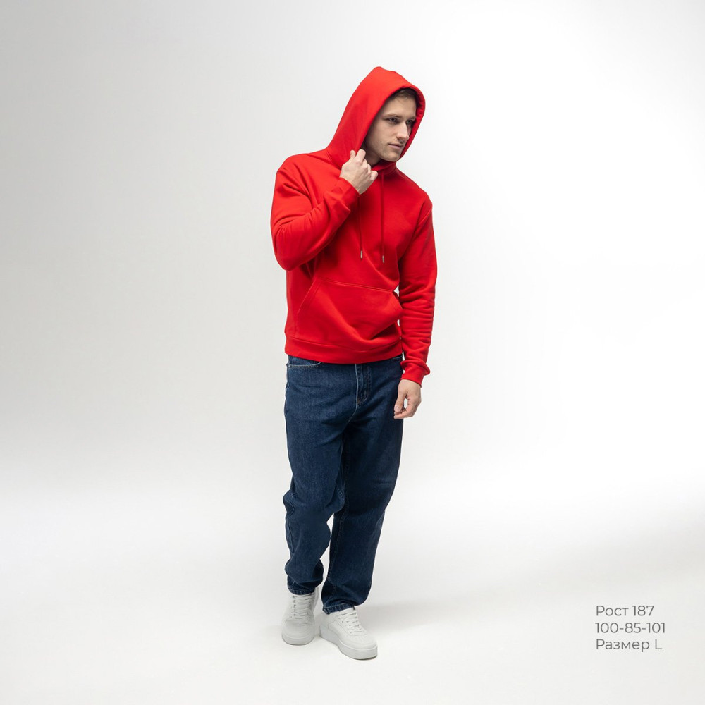 Толстовка с капюшоном (худи) REDFORT – прямой силуэт с большой свободой облегания со спущенным плечом и цельнокроеным объемным двойным капюшоном, карман «кенгуру», манжеты и низ из уплотненной рибаны, которая обеспечивает максимально плотное прилегание, рибана не растягивается со временем, сохраняя форму. Элегантный круглый шнурок в цвет полотна, завершенный стильным латунным наконечником с никелированным покрытием. Усиливающие отделочные швы на плечах, снимающие нагрузку с основных швов, повышая прочность в самых напряженных точках. Внутренний шов по горловине закрыт мягкой тканой тесьмой, для исключения дискомфорта или натирания кожи. Полотно футер трехнитка «петля-диагональ» (350 г/м?) - это особая вязка, которая делает ткань более плотной, фактурной и устойчивой к деформации, придает эстетичный вид изделию на изнанке. Полотно малоусадочное. Состоит из 85% хлопка, 15% полиэстера, хлопок дает натуральную мягкость и дышит, а полиэстер сохраняет форму после множества стирок. Трехслойная структура: Внешняя и изнаночная стороны - 100% хлопок для комфорта. Основа (середина) - 100% полиэстер, который отвечает за форму, тепло и износостойкость. Инновационная конструкция с полиэстеровой нитью, интегрированной между хлопковыми слоями, обеспечивает исключительное сочетание мягкости и прочности. Нить абсолютно незаметна, но значительно повышает износостойкость изделия. Гладкая лицевая сторона полотна выполнена из гребенной хлопковой нити - идеально ровная поверхность без следов узелков, ворсистости и катышек. Насыщенные оттенки достигаются благодаря качественным красителям, устойчивым к выцветанию. Каждое изделие имеет индивидуальную упаковку. Данный товар защищен маркировкой "Честный знак".