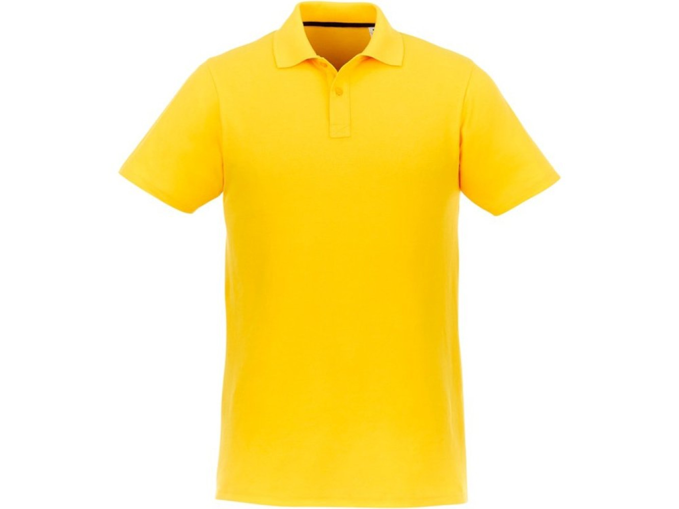 Мужское поло Helios с коротким рукавом. Отрезной-отрывной ярлык для комфорта. Воротник гладкой вязкой в рубчик. Планка с двумя пуговицами. Двойная строчка на воротнике и внизу изделия. Пуговицы в цвет изделия. Полоска на горловине в контрастном цвете. Трикотаж Piqué, 100 % хлопок. 180 г/м².