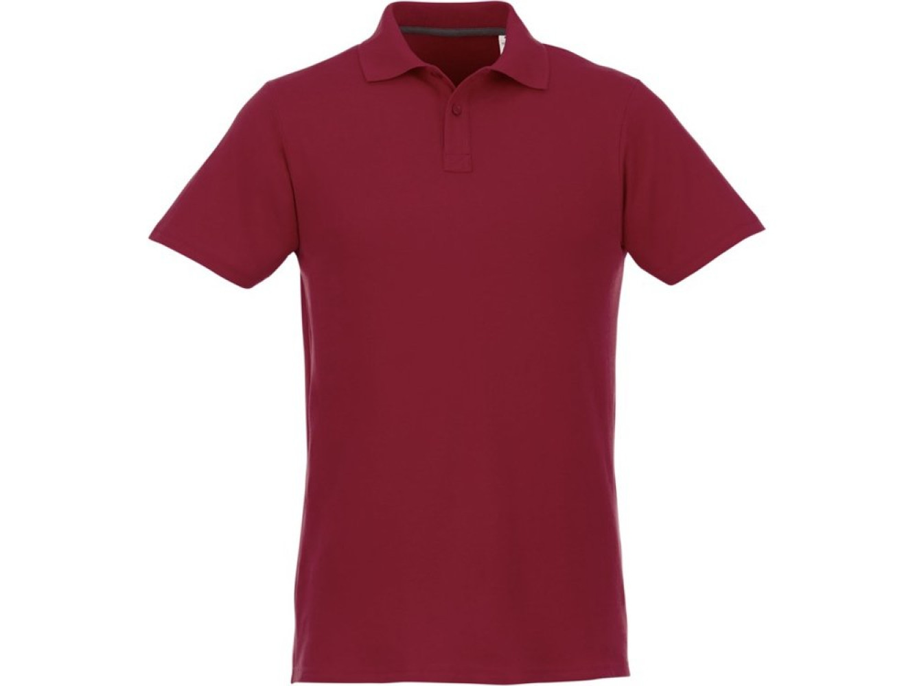 Мужское поло Helios с коротким рукавом. Отрезной-отрывной ярлык для комфорта. Воротник гладкой вязкой в рубчик. Планка с двумя пуговицами. Двойная строчка на воротнике и внизу изделия. Пуговицы в цвет изделия. Полоска на горловине в контрастном цвете. Трикотаж Piqué, 100 % хлопок. 180 г/м².