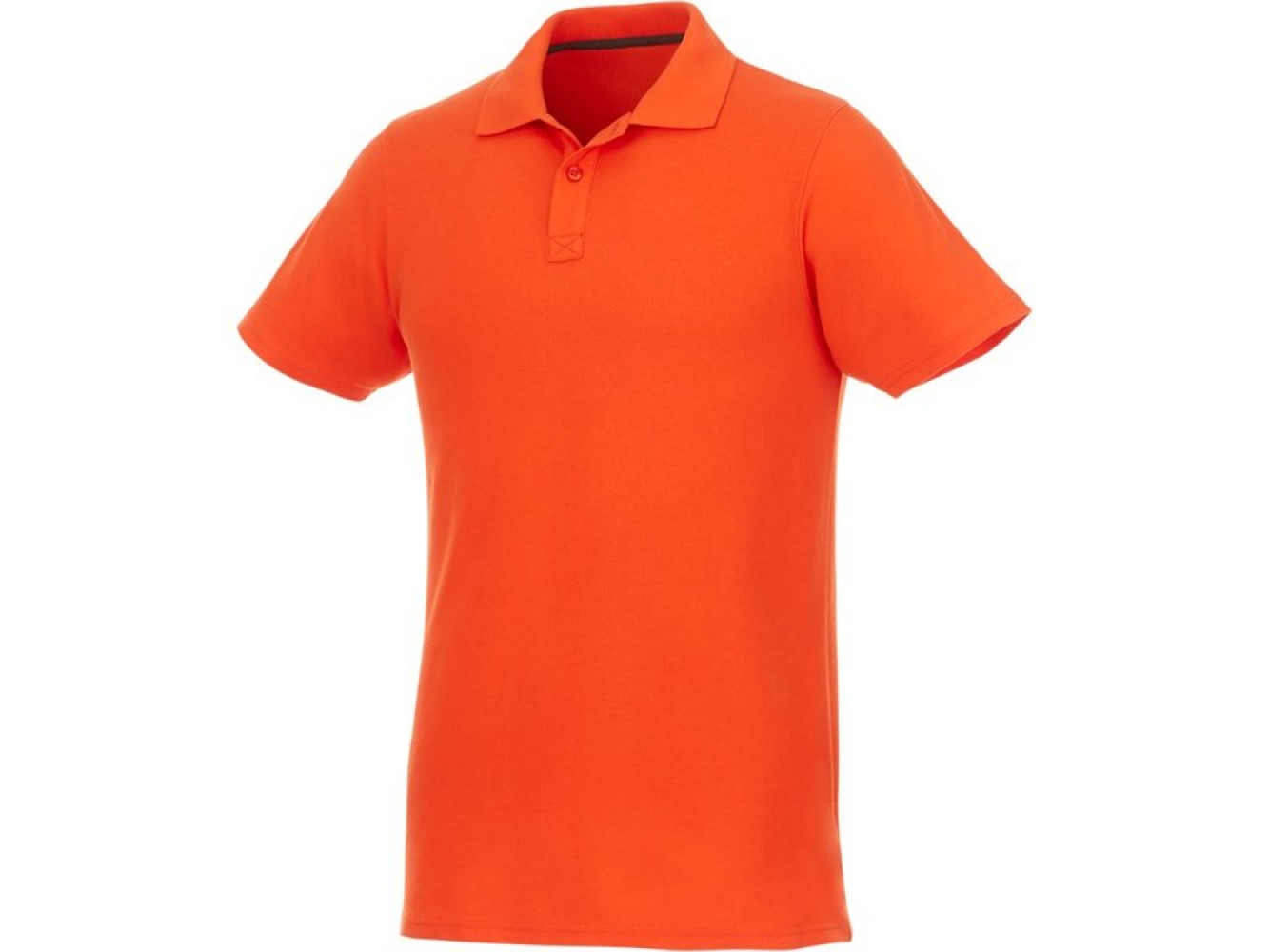 Мужское поло Helios с коротким рукавом. Отрезной-отрывной ярлык для комфорта. Воротник гладкой вязкой в рубчик. Планка с двумя пуговицами. Двойная строчка на воротнике и внизу изделия. Пуговицы в цвет изделия. Полоска на горловине в контрастном цвете. Трикотаж Piqué, 100 % хлопок. 180 г/м².