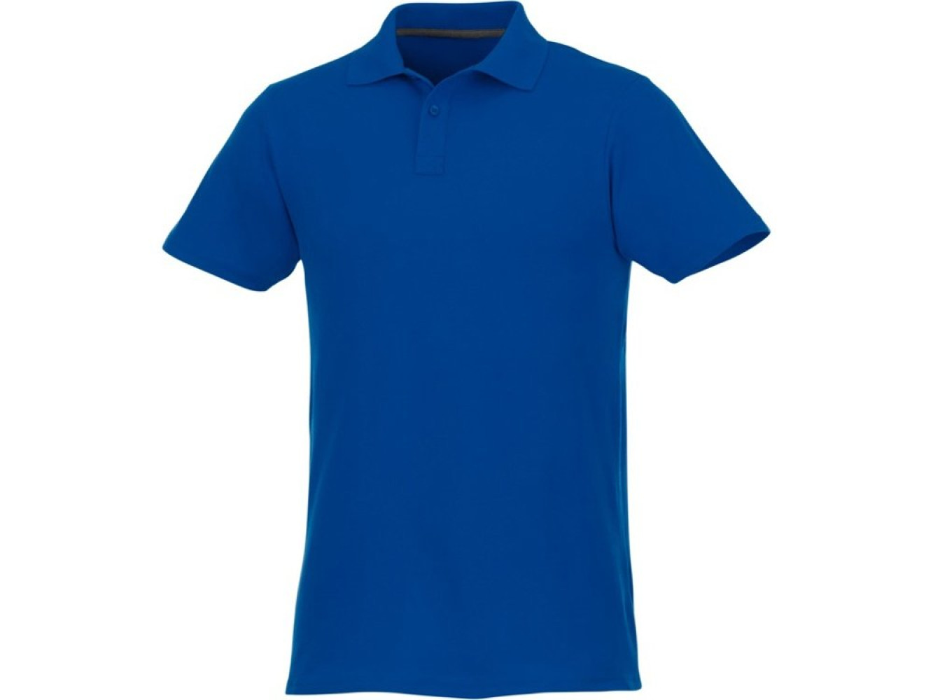 Мужское поло Helios с коротким рукавом. Отрезной-отрывной ярлык для комфорта. Воротник гладкой вязкой в рубчик. Планка с двумя пуговицами. Двойная строчка на воротнике и внизу изделия. Пуговицы в цвет изделия. Полоска на горловине в контрастном цвете. Трикотаж Piqué, 100 % хлопок. 180 г/м².