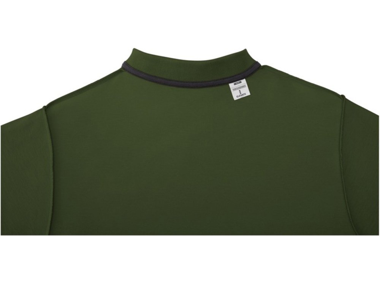 Мужское поло Helios с коротким рукавом. Отрезной-отрывной ярлык для комфорта. Воротник гладкой вязкой в рубчик. Планка с двумя пуговицами. Двойная строчка на воротнике и внизу изделия. Пуговицы в цвет изделия. Полоска на горловине в контрастном цвете. Трикотаж Piqué, 100 % хлопок. 180 г/м².