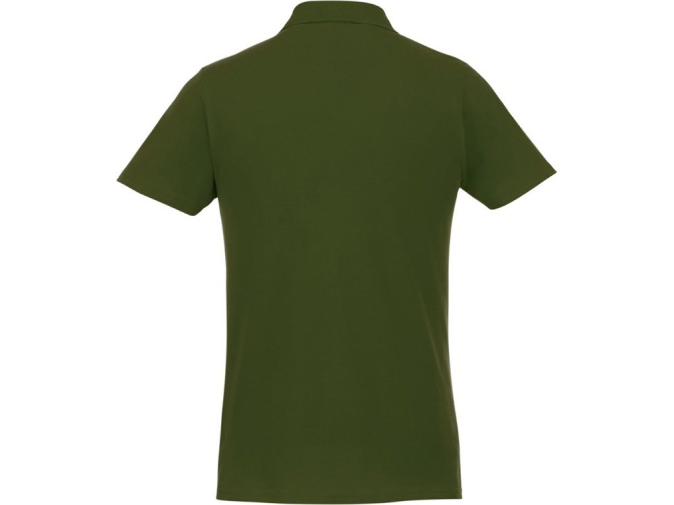 Мужское поло Helios с коротким рукавом. Отрезной-отрывной ярлык для комфорта. Воротник гладкой вязкой в рубчик. Планка с двумя пуговицами. Двойная строчка на воротнике и внизу изделия. Пуговицы в цвет изделия. Полоска на горловине в контрастном цвете. Трикотаж Piqué, 100 % хлопок. 180 г/м².