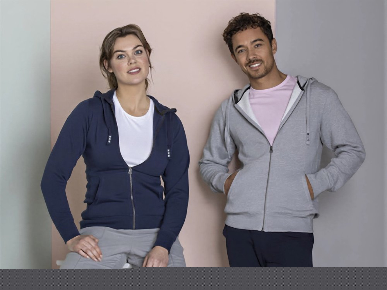 Толстовка Арора с капюшоном и застежкой-молнией на всю длину. Стандартный покрой. Резинка 2х2 на боковых вставках, поясе и манжетах. Карман кенгуру. Мужская и женская модели с завязками на капюшоне. Подкладка внутри капюшона и на спинке под горловиной в форме полумесяце. Атласная лента для укрепления внутри горловины. Принт лого сзади в тон изделия. Серебристые люверсы с лого. Трикотаж: 82% хлопок, 10% вискоза и 8% полиэстер, чесаная внутренняя сторона. 300 г/м².