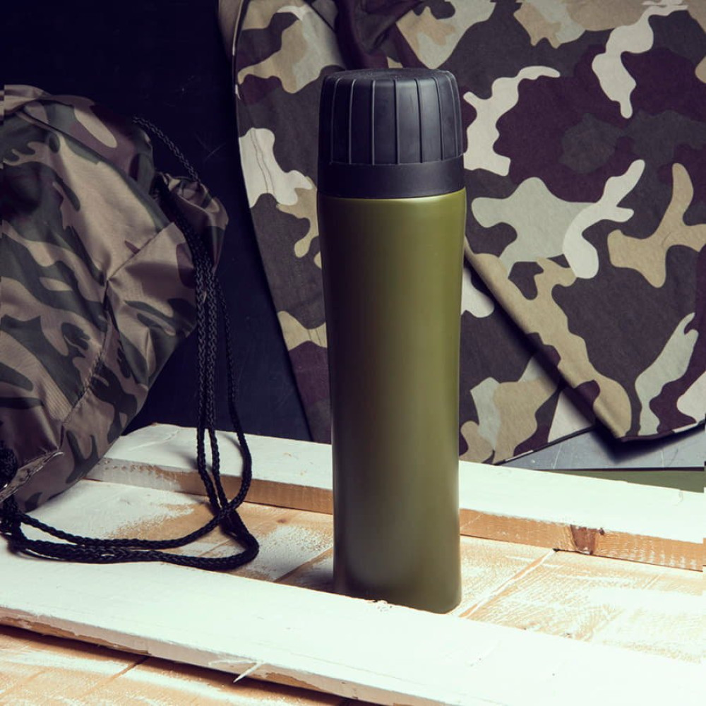 Термос для настоящих воинов. Вакуумный, с двойными стенками из 304 стали. Сохраняет температуру не менее 6 часов. Цвет близкий к пантону 5747С