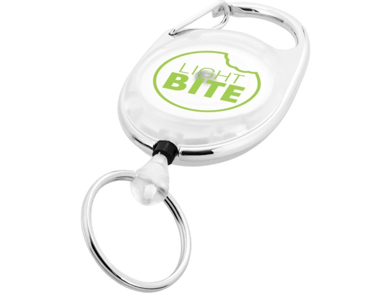 клипса оснащена карабином, а благодаря прочному механизму и шнуру