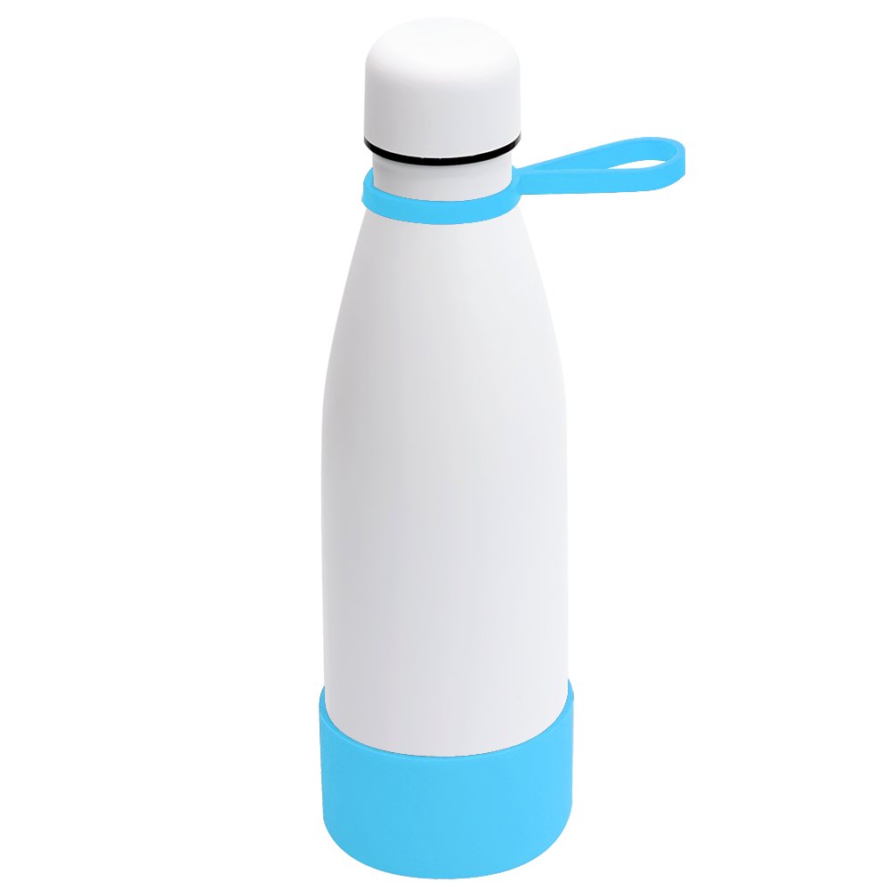 Наша термобутылка из нержавеющей стали с двойными стенками идеально подходит для горячих или холодных напитков и впечатляет своим модным и функциональным дизайном. Конструкция с двойными стенками и вакуумом гарантирует, что напитки дольше останутся горячими или холодными. Бутылку для питья можно заказать в элегантном черном или белом матовом порошковом исполнении. Доступна объёмом 480 мл. Стильно разместите свой логотип на этой модной бутылке для напитков премиум-качества. Двойная стенка с медно-вакуумной изоляцией Микропорошковое покрытие 100% герметичность Цвет по PANTONE® кольца-держателя и манжеты (максимально приближен): Sea wave 2226C