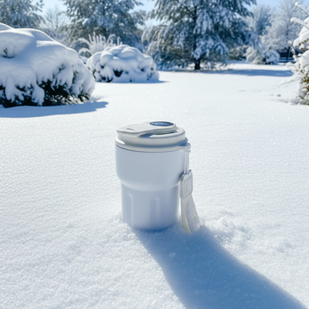 расположенного в крышке. Чтобы узнать температуру напитка внутри