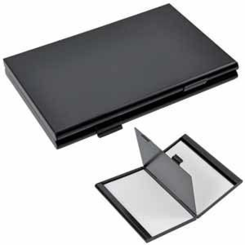 Визитница двухсторонняя "Дубль"; черная матовая; Размер: 9,3х6,1х1 см; Материал: металл;