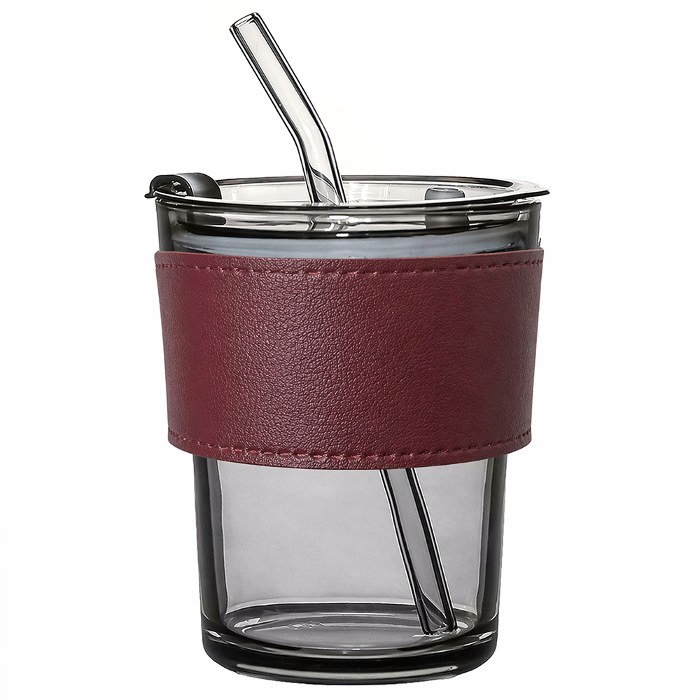 Стакан стеклянный с трубочкой и капхолдером Karamel выполнен в