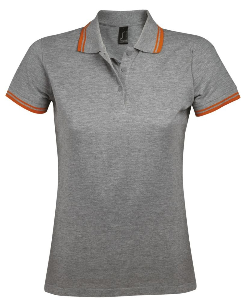 Рубашка поло женская Pasadena Women 200 с контрастной отделкой, серый меланж/оранжевый, размер L