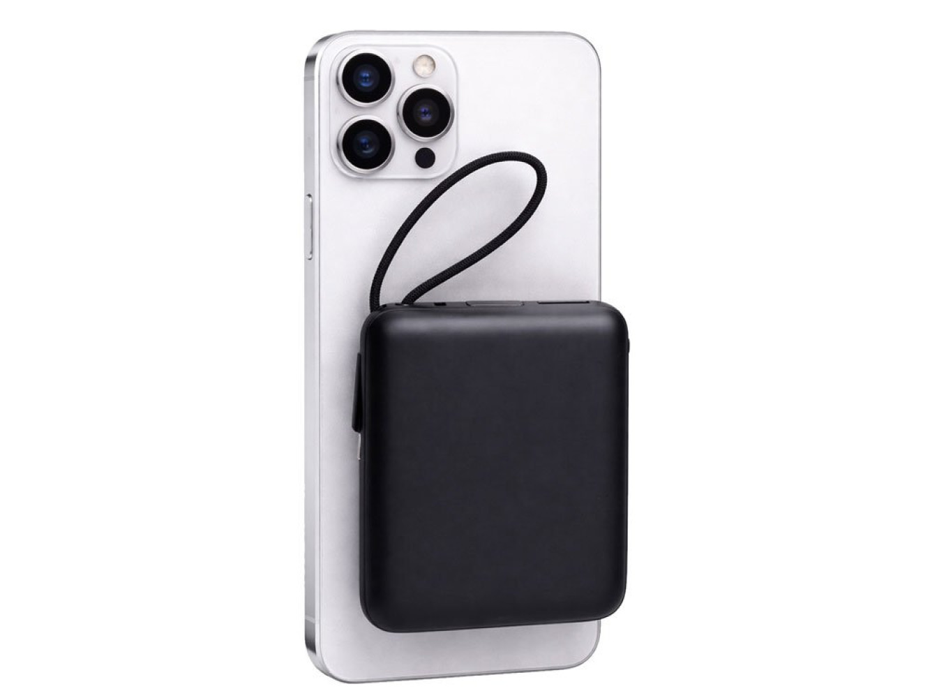 пауэрбанк прикреплен к телефону. Встроенный двусторонний USB-C