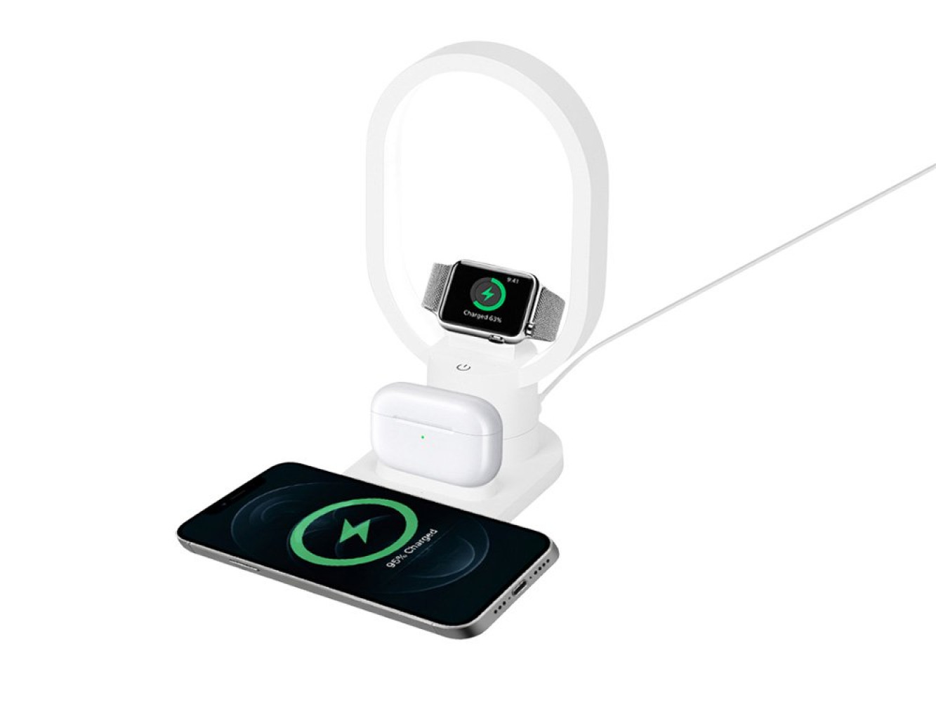 Настольная зарядная станция с лампой для трёх устройств - смартфона