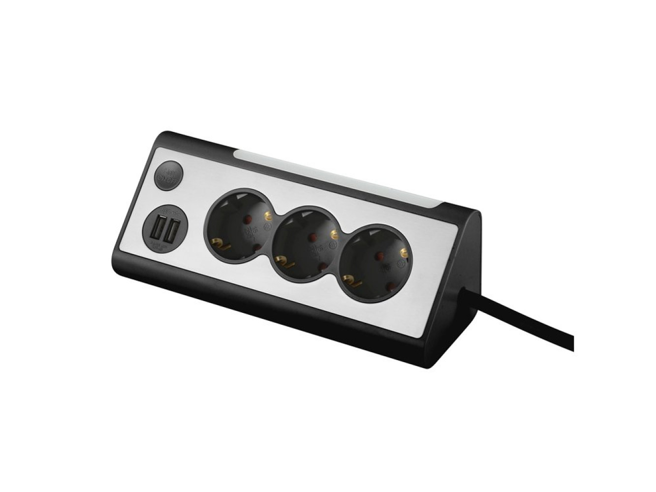 Сетевой фильтр Rombica NEO TRINITY - Black. * Три силовые штепсельные розетки. * Два USB порта. * Встроенный LED светильник. Вход- Евровилка Выходы- USB 5 В / 2.1 А, 2 шт. Евровилка 220 В / 16 А, 3 шт. Максимальная мощность, Вт3500 Длина шнура 1.5 м