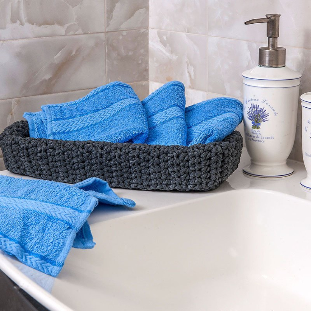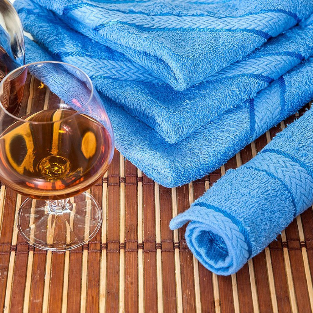 Комплект из 6 гладкокрашеных махровых салфеток с жаккардовой косичкой из 100% хлопка.