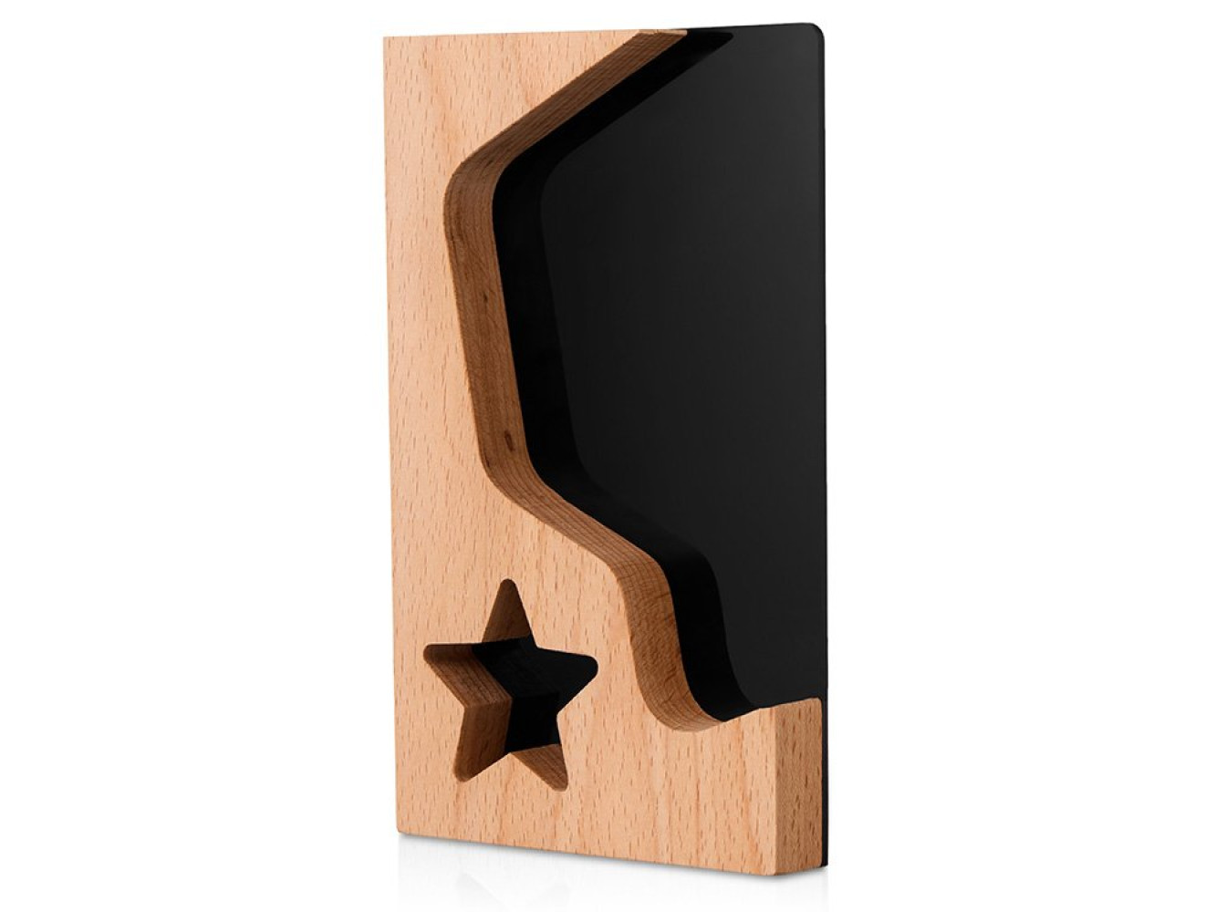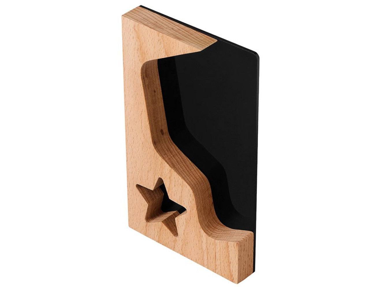 Черный акрил добавляет контраста рамке из бука, логотип или