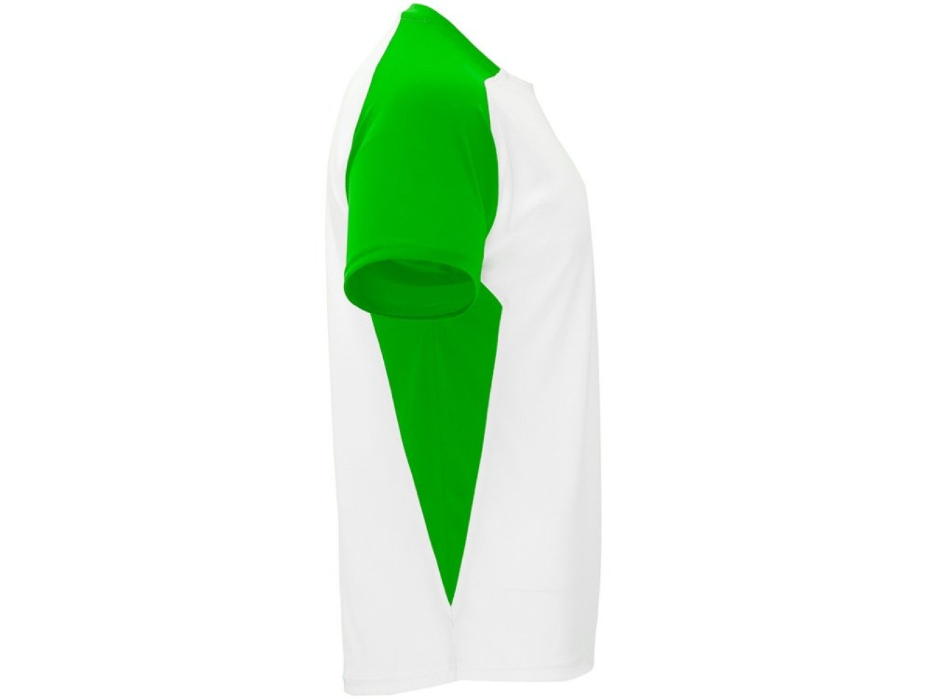 Спортивная футболка с коротким рукавом реглан. Круглый вырез горловины. Контрастные рукава и боковые вставки.