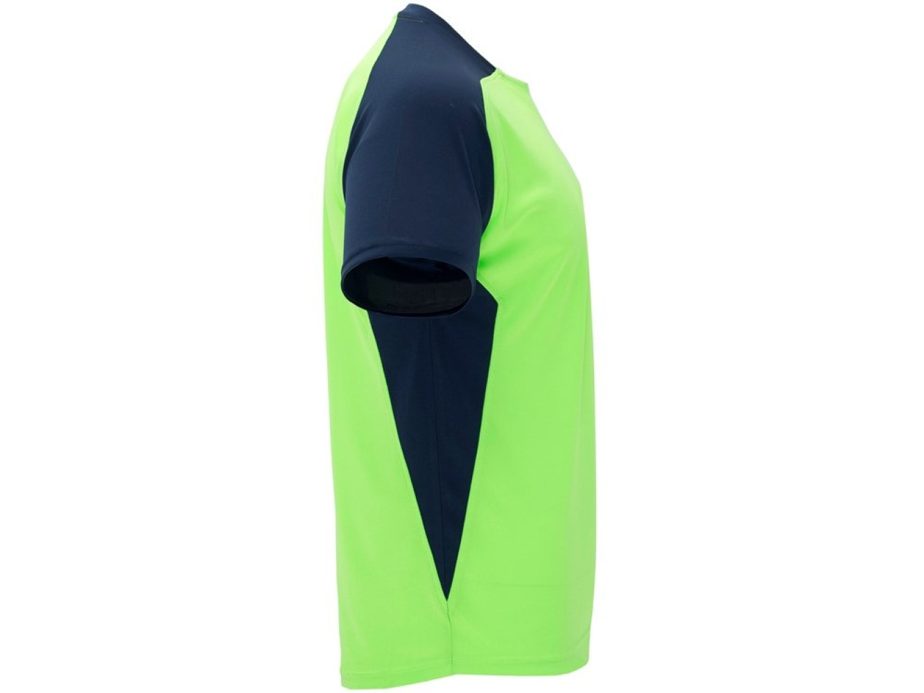 Спортивная футболка с коротким рукавом реглан. Круглый вырез горловины. Контрастные рукава и боковые вставки.