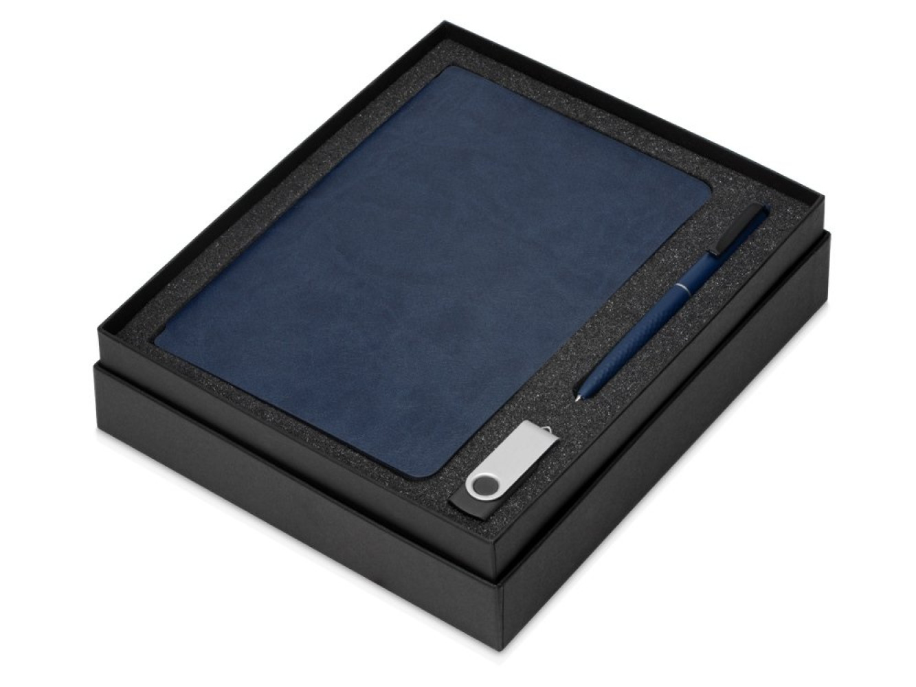 • Цвет: блокнот- темно-синий, флешка- черный/серебристый, ручка- красный/черный