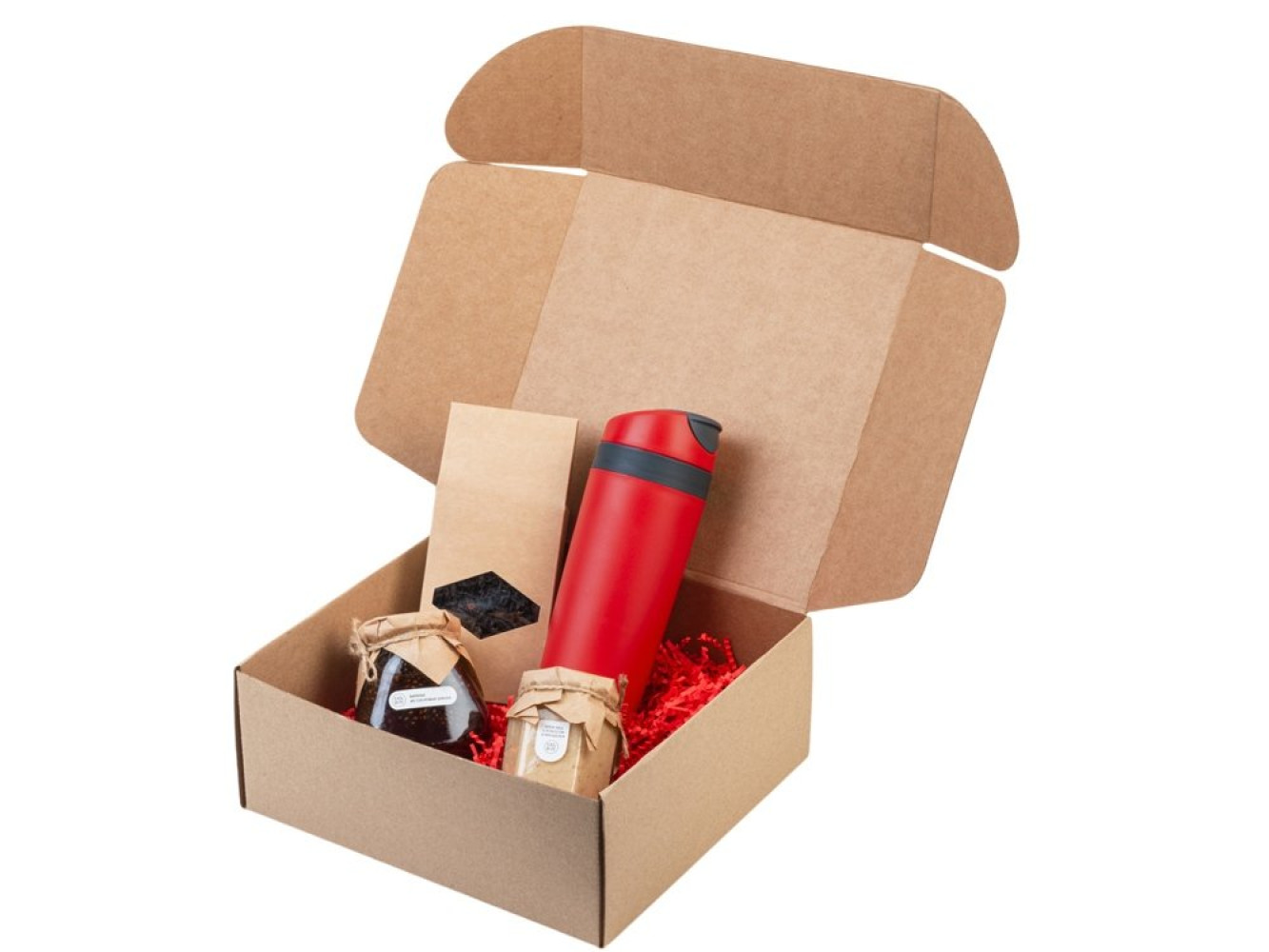 • Материал: коробка - картон, банка - стекло, термокружка - полипропилен