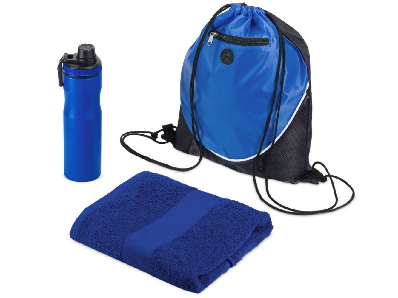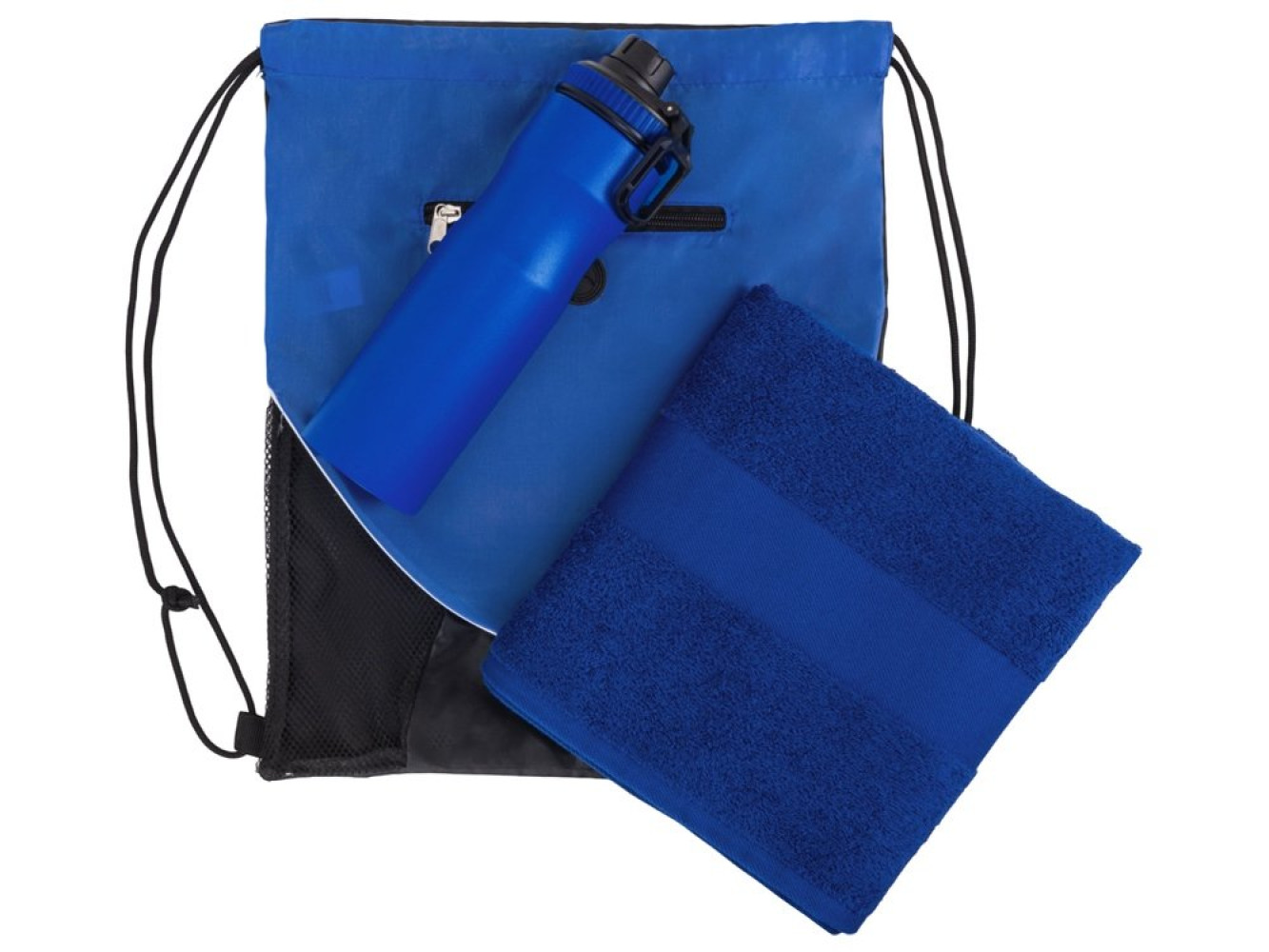 Надёжная и практичная бутылка изготовлена из пищевой стали марки SUS 304. Крышка оснащена складной ручкой, которая может быть использована для подвешивания или переноски, а также нетеряемым колпачком. Эргономичная форма позволяет бутылке удобно лежать в руке, а порошковое покрытие делает её тактильно приятной на ощупь. Вместительный рюкзак-мешок с дополнительным карманом на молнии пригодится, чтобы всегда держать под рукой всё необходимое для тренировки. Большое полотенце из 100% хлопка не вызовет аллергии и не навредит коже. • объём бутылки: 850 мл • вместительный рюкзак • практичный набор для спортивного мерча
