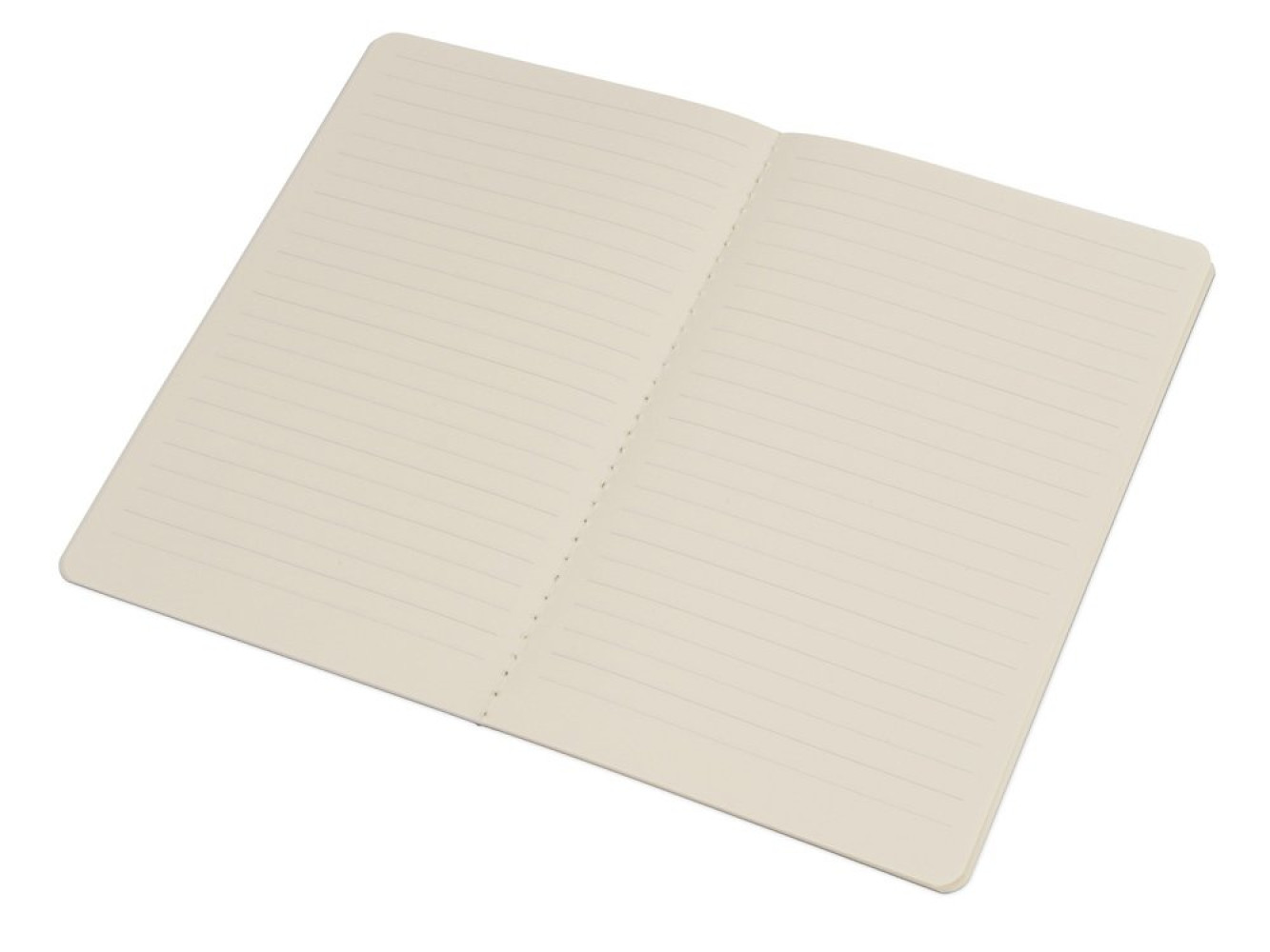 Универсальный блокнот в трендовых оттенках. Обложка матового цвета с эффектом "меланж". Прошитый нитками блок на 60 линованных страниц.