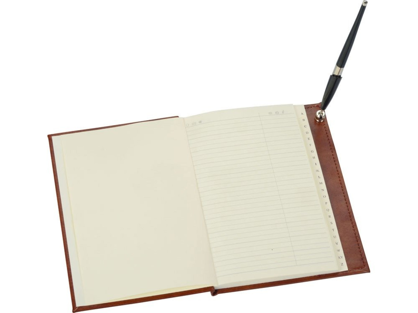 Оригинальный настольный прибор состоит из записной книжки и ручки.