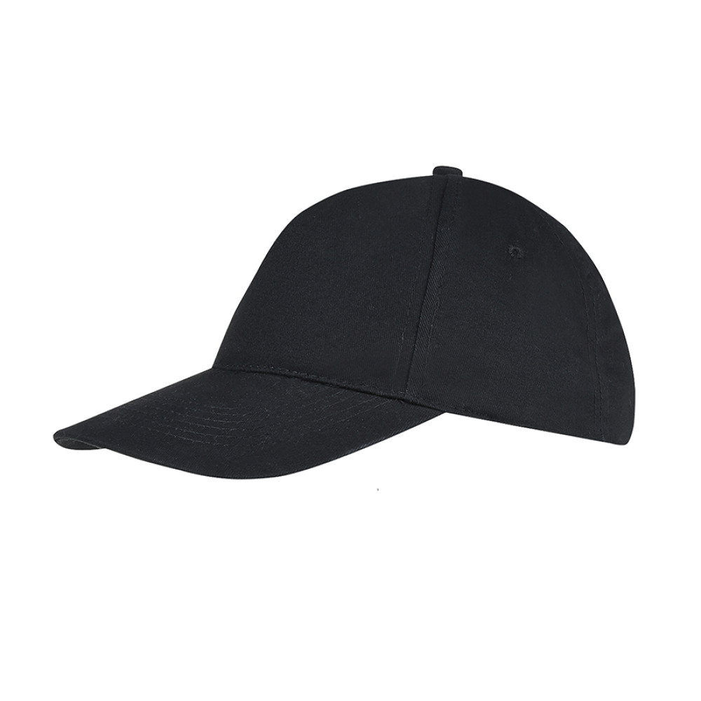 Бейсболка без шва на лбу, 5 клиньев, 4 вышитых люверса, жесткий козырек, застежка-липучка.