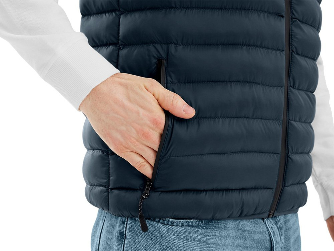 Стёганый мужской жилет — стильный и практичный выбор для повседневной носки и активного отдыха. Модель выполнена из износостойкой ткани с аккуратной стёжкой, которая не только придаёт современный вид, но и помогает удерживать тепло. • Центральная застёжка на водонепроницаемую молнию — защита от ветра и влаги. • Два боковых кармана на молнии для надёжного хранения мелочей. • Воротник-стойка для дополнительного тепла и комфорта в прохладную погоду. • Резиновые пуллеры для удобства использования молний даже в перчатках. • Низ и проймы обработаны тонкой эластичной тесьмой в тон основной ткани — аккуратный внешний вид и комфортная посадка. Лёгкий, тёплый и удобный, этот жилет отлично подойдёт для брендирования и станет универсальной частью корпоративной или промо-одежды.