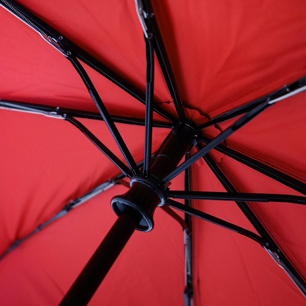 скатывается, а сам зонт остается сухим. Цветной элемент на ручке –