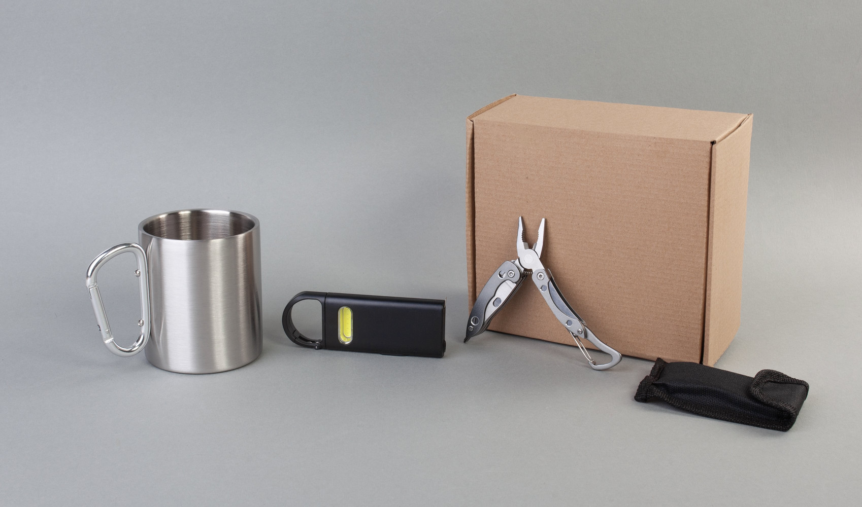 Нанесение:Корпус кружки середина, Корпус кружки слева от ручки, Корпус кружки справа от ручки, Дно кружки ручка слева, Дно кружки ручка справа, Лицевая сторона, Оборотная сторона сверху, Оборотная сторона снизу, Сторона ножа 1 (карабин справа) , Сторона ножа 2 (карабин слева) - L2: Лазерная гравировка по металлу, Р: Тампопечать