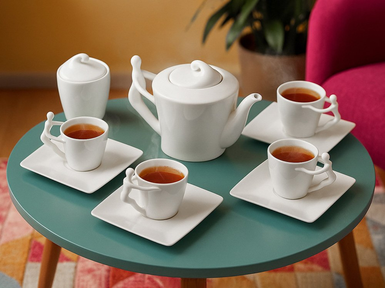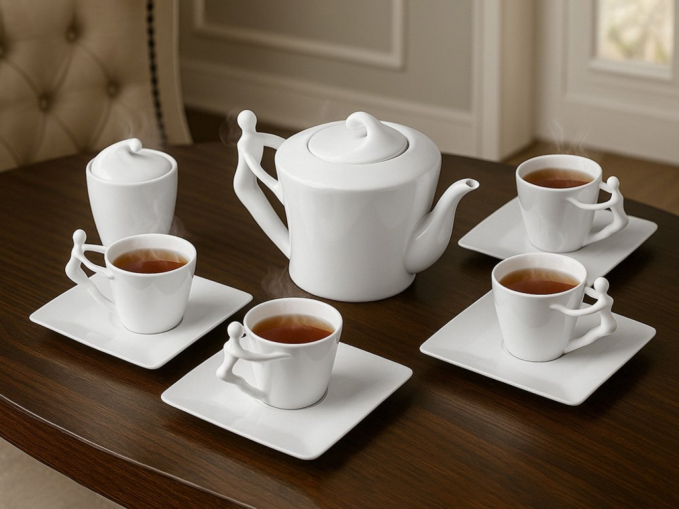 необходимое: 4 чашки, 4 блюдца, чайник и сахарница. Эксклюзивная
