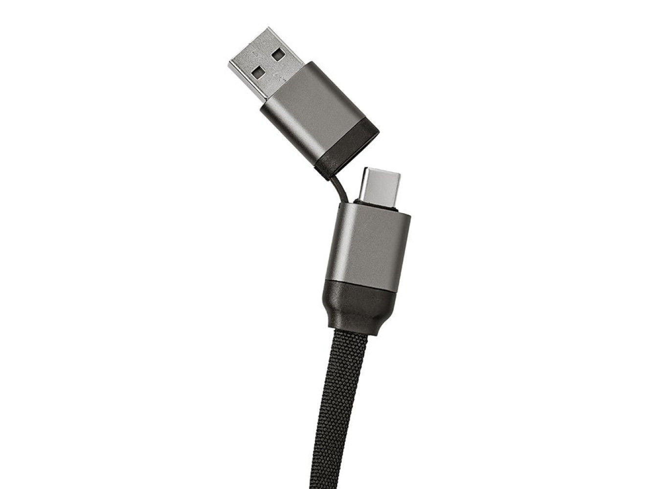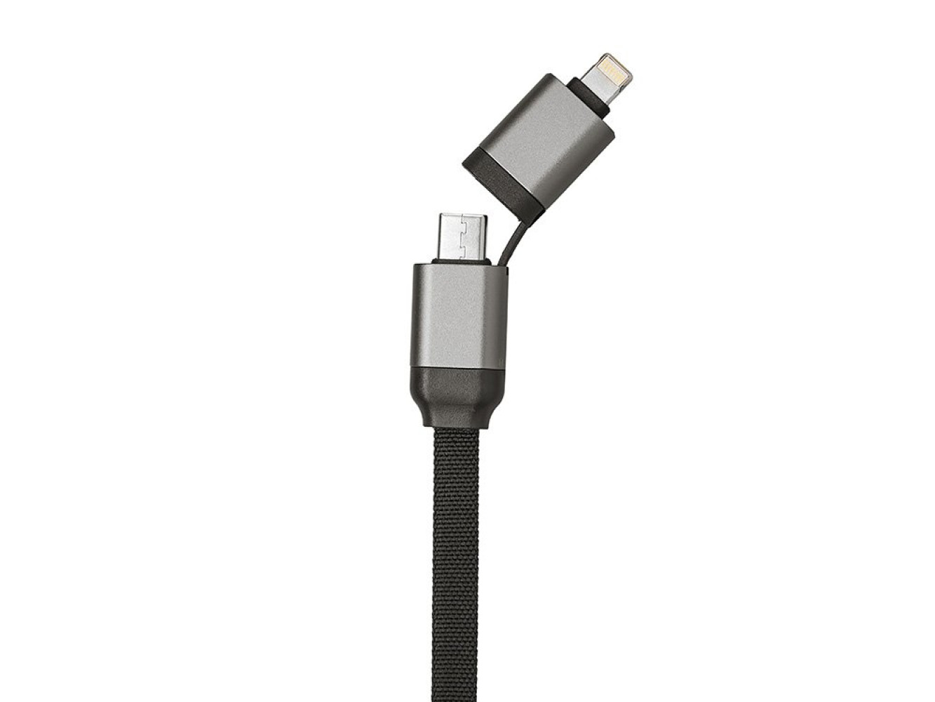 входа (USB-C / USB-A) + 2 выхода (USB-C / Lightning) = один кабель