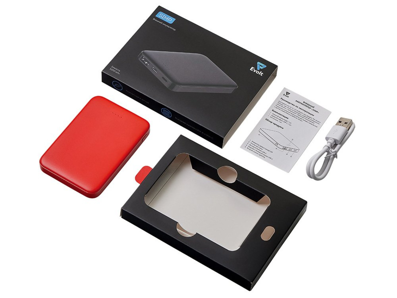 • Комплектность: портативное зарядное устройство, кабель USB Type-C