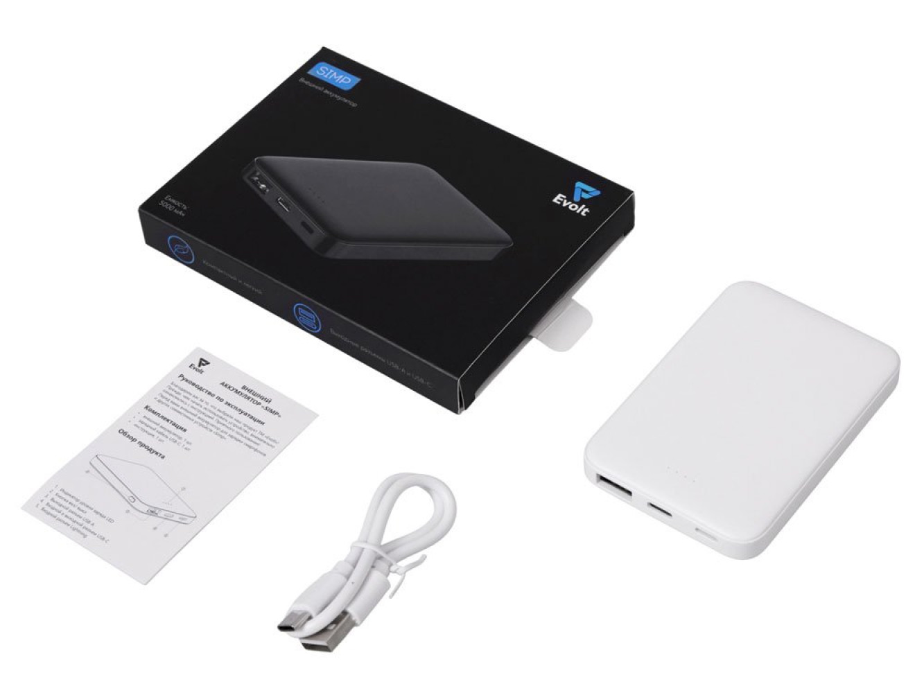 • Комплектность: портативное зарядное устройство, кабель USB Type-C