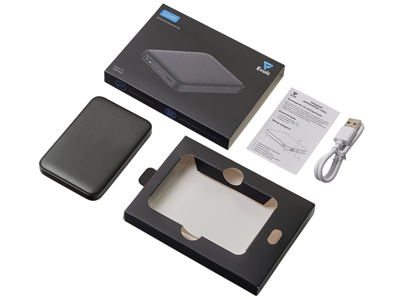 • Комплектность: портативное зарядное устройство, кабель USB Type-C