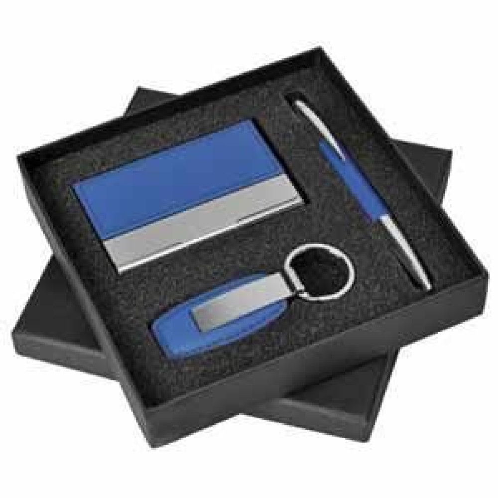 Набор "Эксперт": визитница, брелок и авторучкаразмер: 16,5х16,5х4 смцвет: синийматериал: металл, иск. кожа