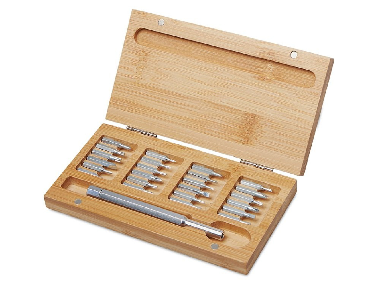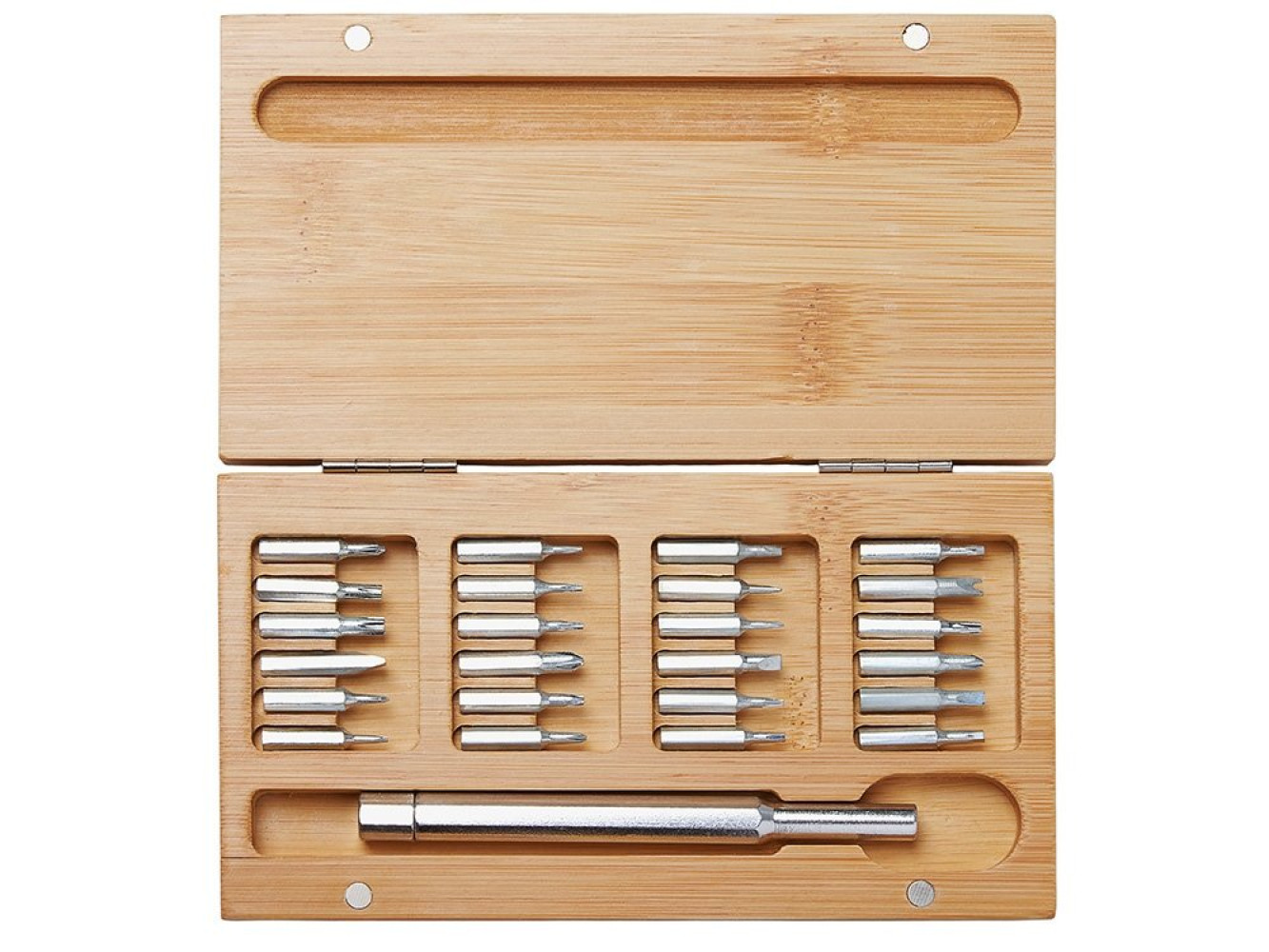 идентификации. Внутри — отвертка и 24 наиболее востребованные биты: