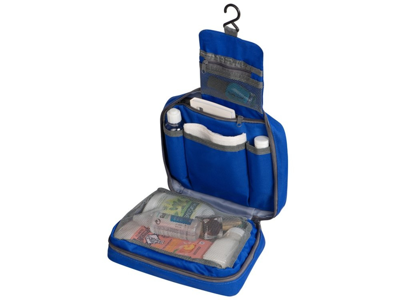 Несессер для путешествий – неотъемлемый атрибут комфортных поездок, служащий для компактного хранения различных мелочей. Аксессуар также пригодится для походов в спортзал и просто поддержания порядка дома. Это превосходный подарок любителю путешествий, а также отличный вариант промо-презента для рекламных кампаний. Большая поверхность позволяет нанести логотип или слоган фирмы. • Вместительное пространство с двумя большими отделениями и несколькими карманами дает возможность эргономично распределить весь дорожный арсенал косметических и туалетных принадлежностей. • Крючок позволяет подвесить аксессуар, например, в уборной поезда или гостиничном номере, в случае отсутствия полки. • Оптимальные размеры, не превышающие формат А4, позволяют легко разместить несессер в любом чемодане или дорожной сумке.