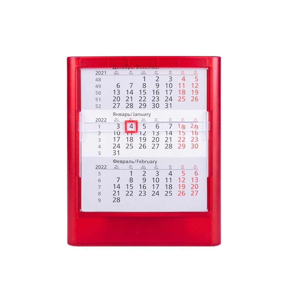 Календарь настольный на 2 года ; прозрачно-красный; 12,5х16 см; пластик; тампопечать, шелкография