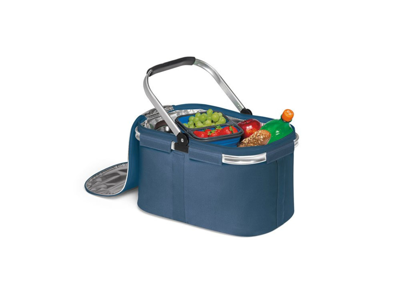 Гибкая корзина для пикника 600D. Состоит из двойного закрытия и внутренней подкладки. Корзина со съемной алюминиевой структурой, эргономичной ручкой из EVA и объемом до 14 л. 460 x 270 x 250 мм.
