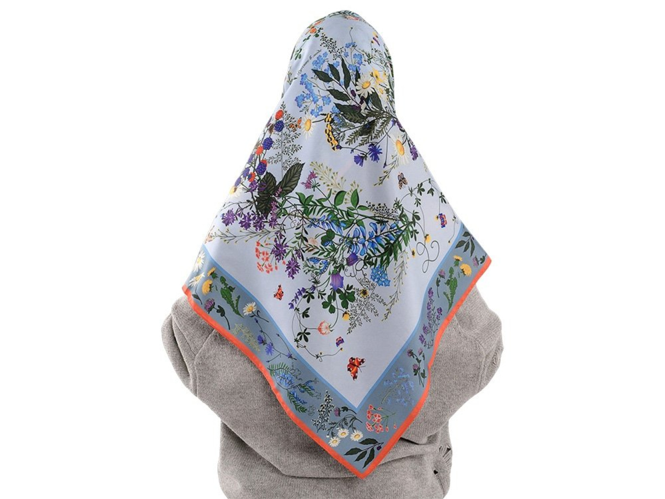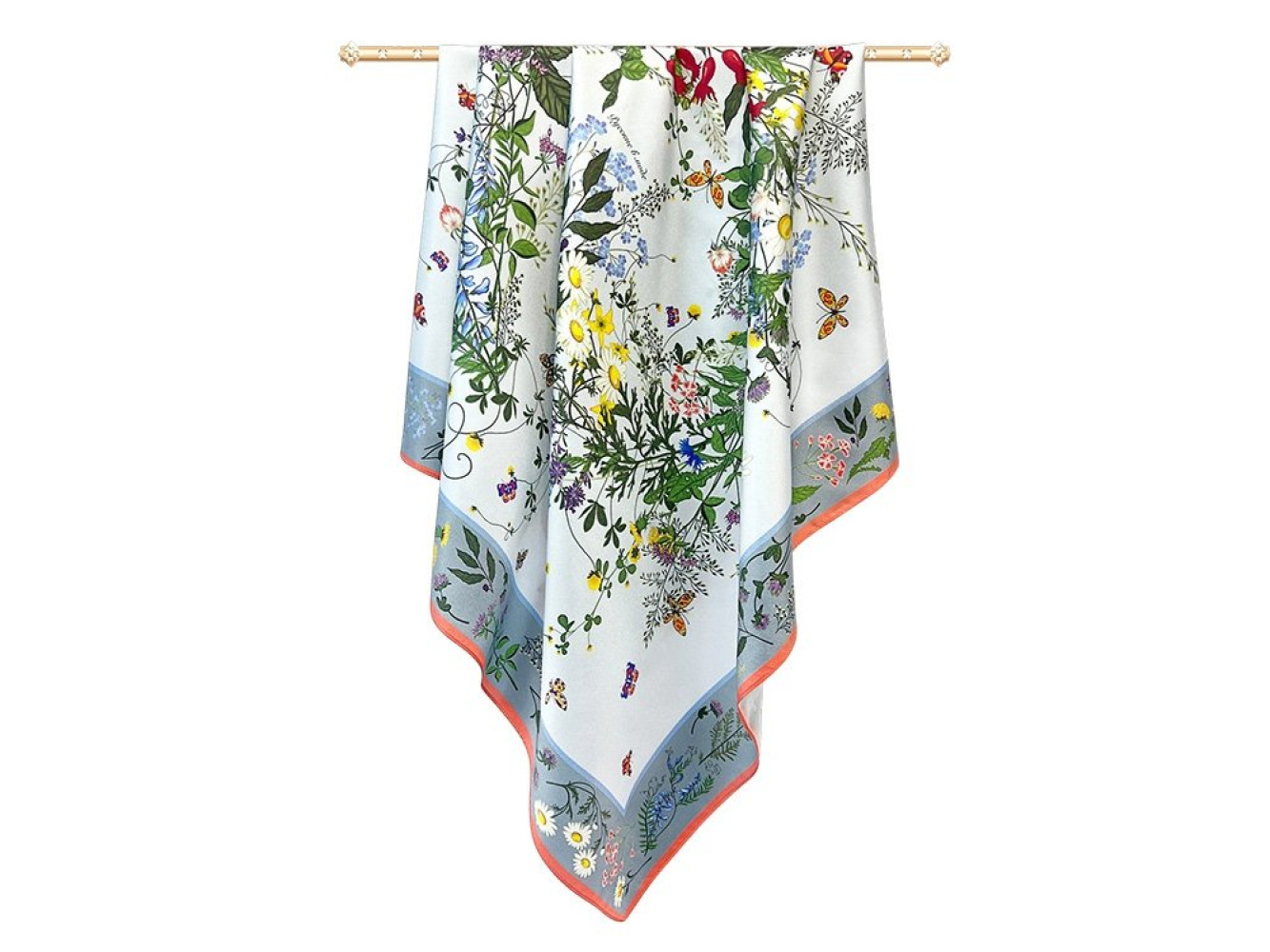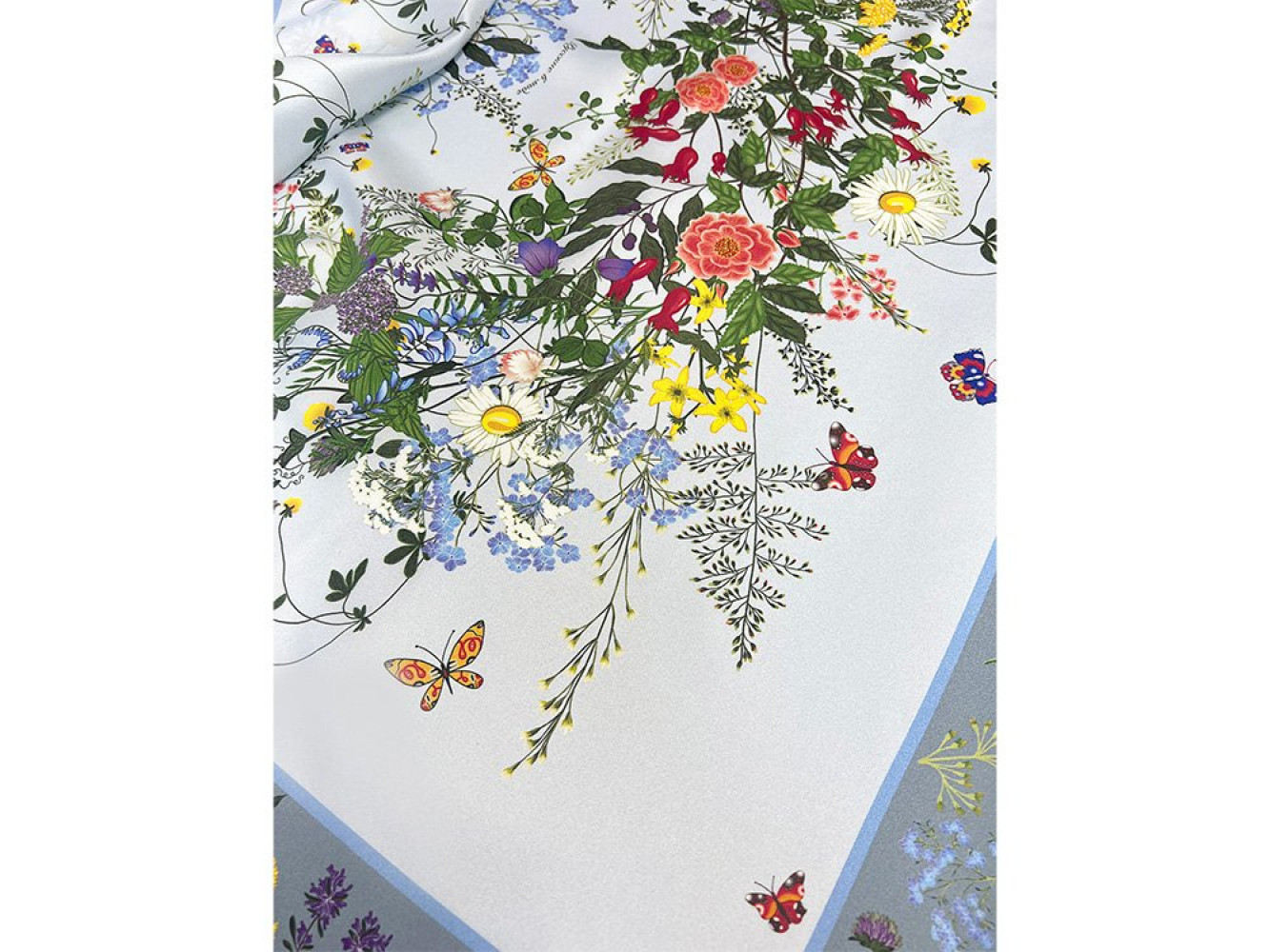 шелковом платке, где собраны изображения более 20 цветов и трав.