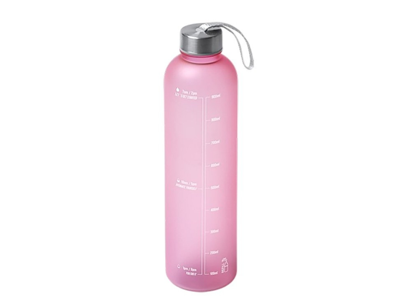Бутылка для воды из пластика PCTG с полупрозрачным корпусом, навинчивающейся крышкой и ручкой для переноски. На корпусе есть шкала ёмкости и рекомендации по потреблению воды. Объем: 1 л. Поставляется в индивидуальной коробке.