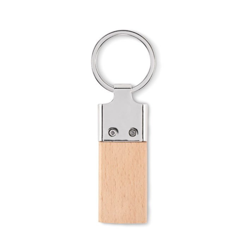 Брелок для ключей прямоугольной формы из цинкового сплава и дерева.