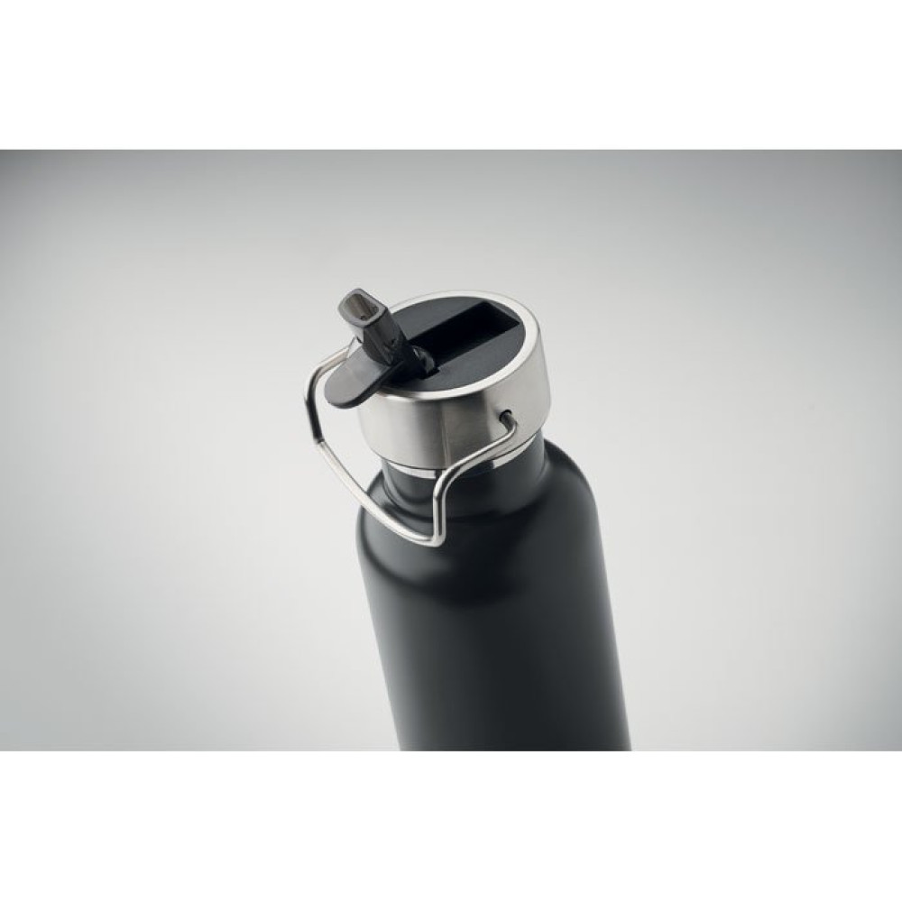 Бутылка с двойными стенками из переработанной нержавеющей стали (90%) и обычной нержавеющей стали (10%) со встроенной соломинкой и крышкой с ручкой. Объем: 660 мл.